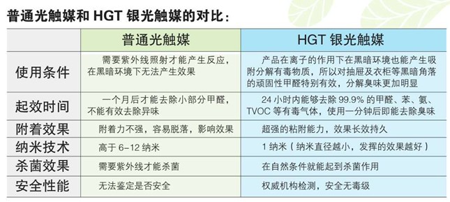 普通光觸媒和HGT銀光觸媒的對比: